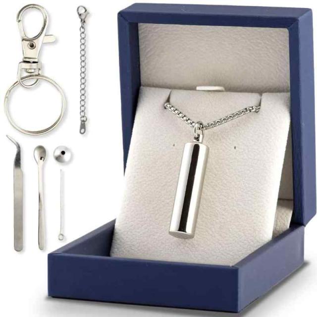 遺骨 ペンダント 安心二重防水 収骨キット付属 メモリアルペンダント 遺骨入れ 遺骨カプセル ネックレス 手元供養 低アレルギー ステンレス製 ガラス管 キーホルダー (鏡面 仕上げ, 1.シルバー)