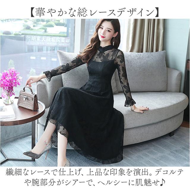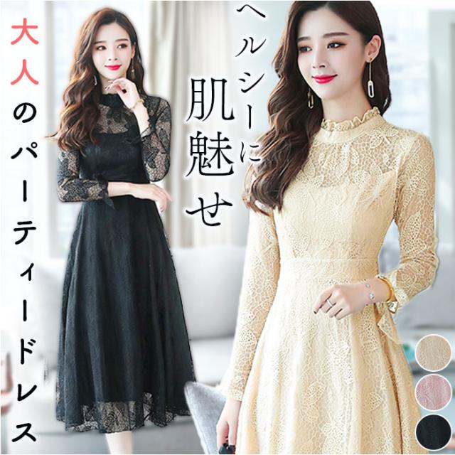 パーティードレス レディース ドレス 通販 ワンピース ワンピ フォーマルワンピ フォーマルワンピース 総レース レース フォーマル ひざ下 膝下 膝丈 シースルー 透け パーティー
