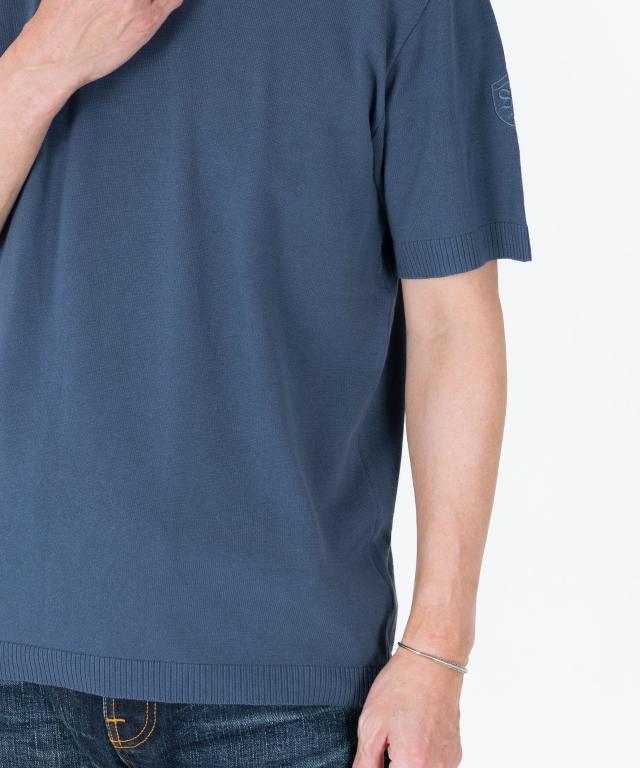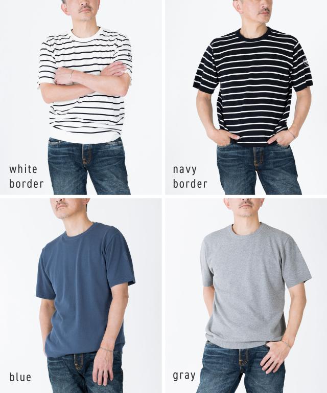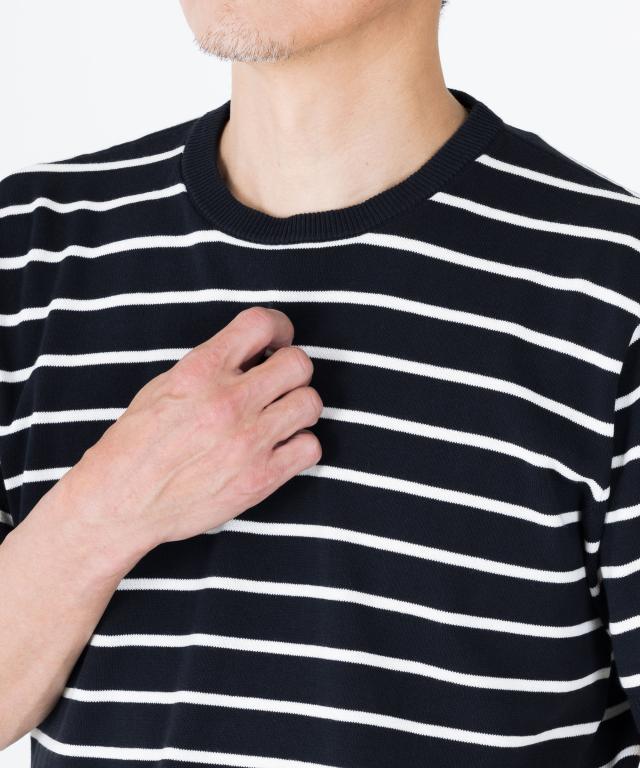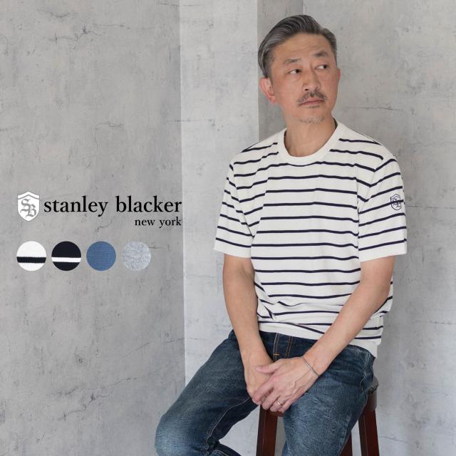 Tシャツ 半袖 メンズ ニット 洗える 40代 50代 60代 70代 コットン 綿100 プレゼント ギフト 贈り物 stanley blacker スタンリーブラッカー クルーネック ホワイト ネイビー ボーダー リブ ロゴ ブランド 春 夏 秋 ゴルフ カジュアル ウォッシャブル M L LL 3L
