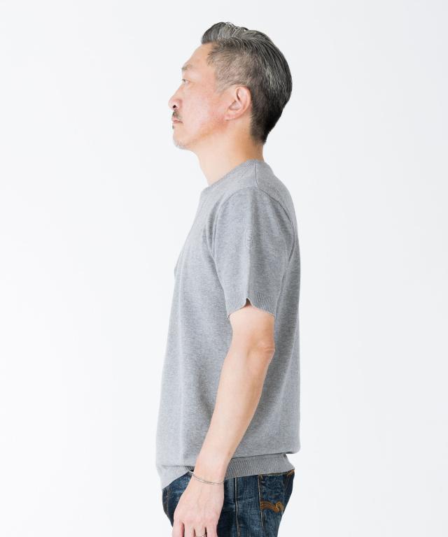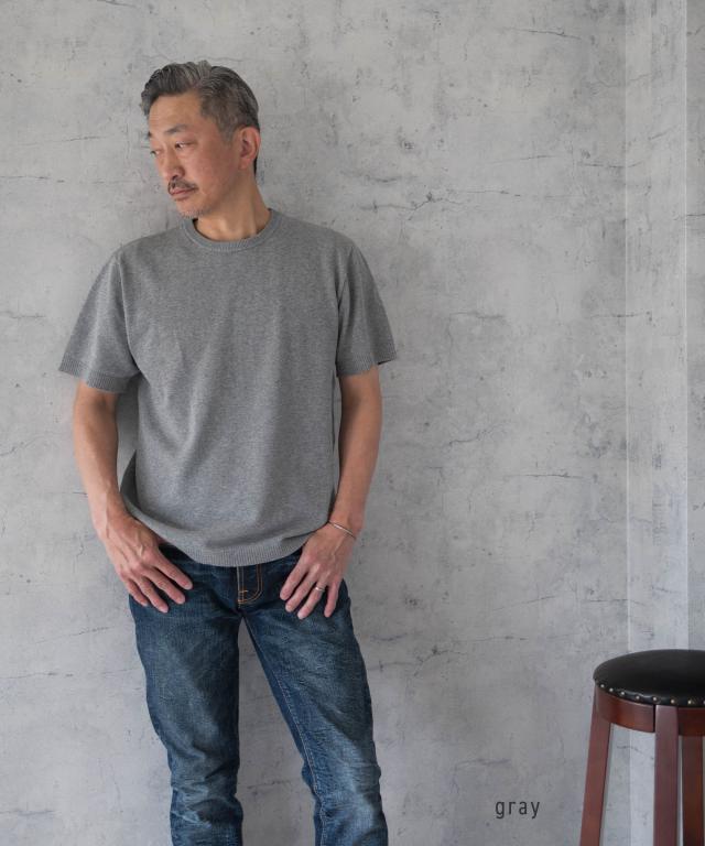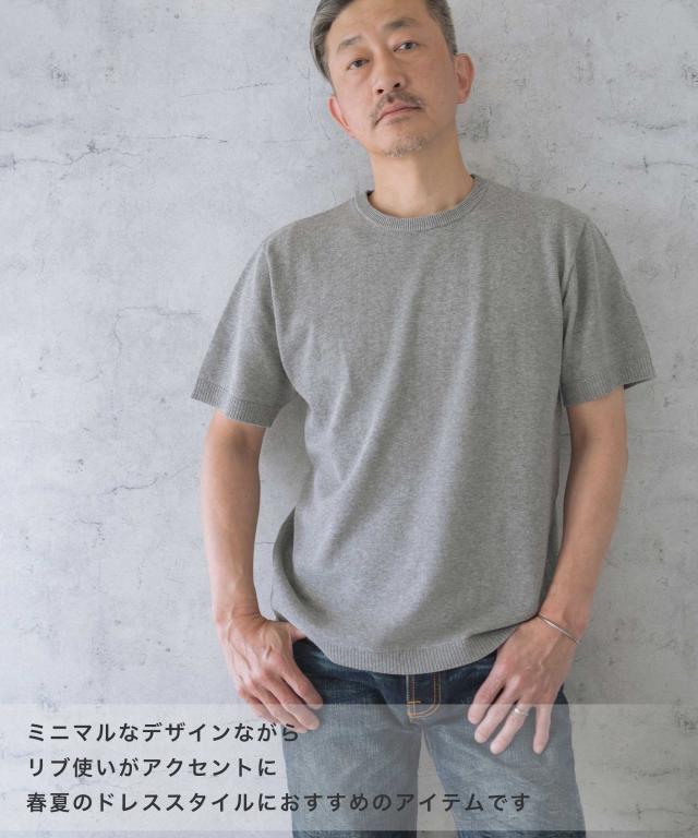 カジュアルにもエレガントにも着回せる肌触りの良いコットン100%の半袖クルーネックニット