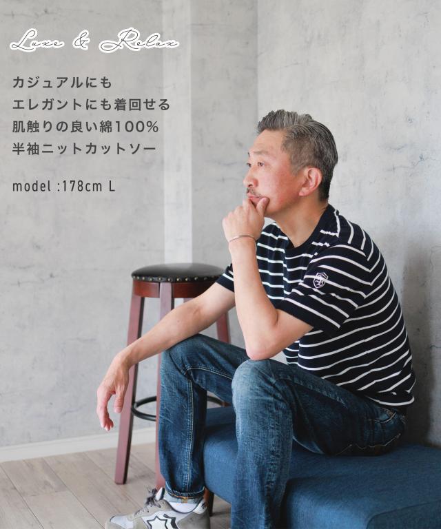 キーワード:サマーニット プレゼント ギフト コットンニット 洗える 半袖ニット ボーダーT 30代 40代 50代 60代 70代 スタンリーブラッカー stanley blacker