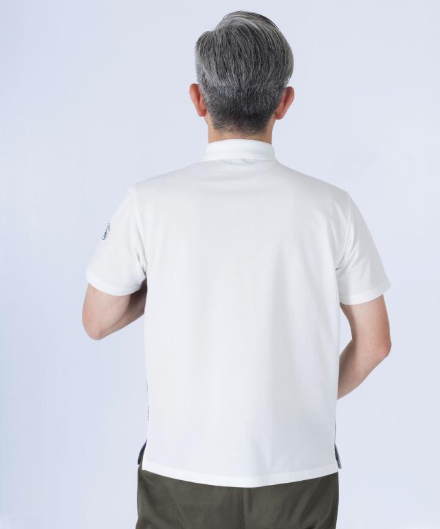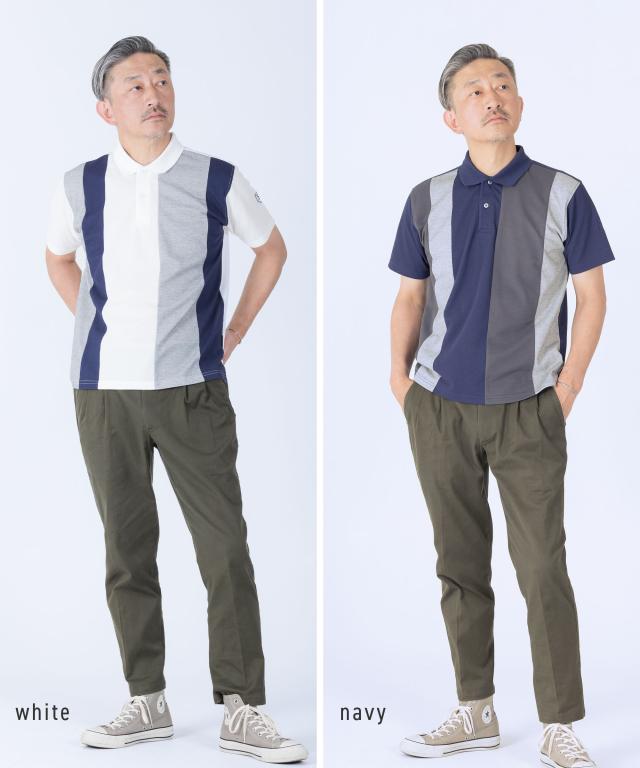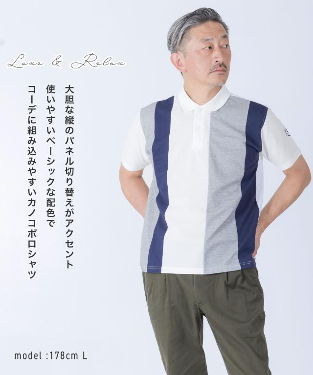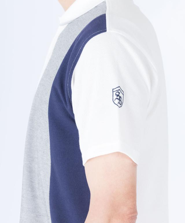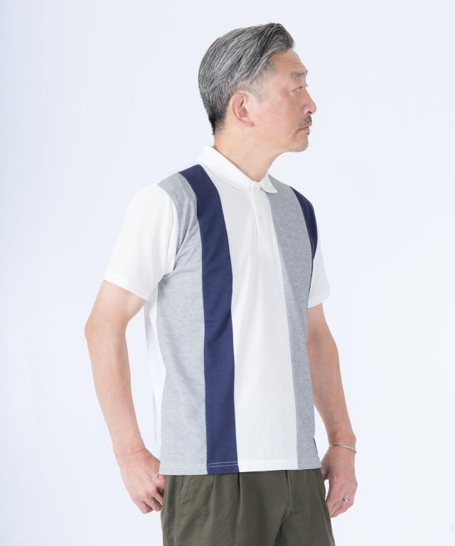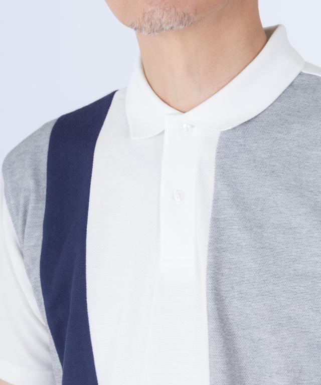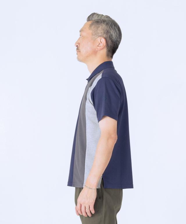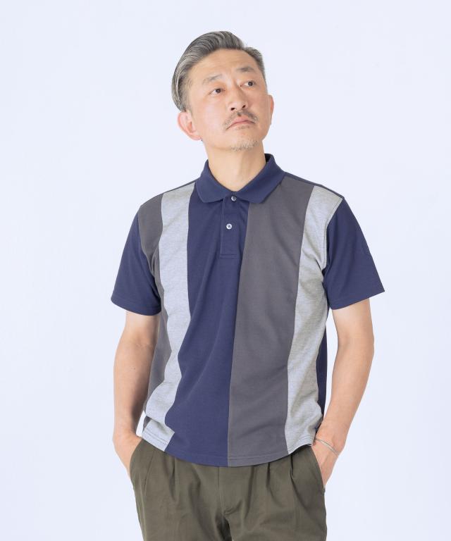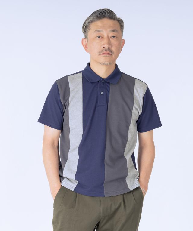 stanley blacker [ スタンリーブラッカー ] 縦切替 カノコポロシャツ。大胆なフロントの切り替えがアクセント。オフィスカジュアルにおすすめのトップス