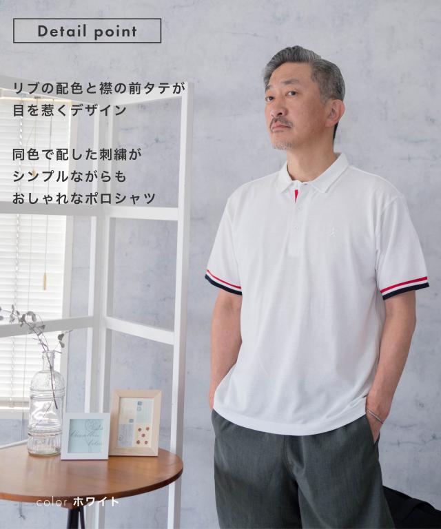夏の涼しいトップス大定番!リブの配色と襟の前タテが目を惹くデザイン。同色で配した刺繍がシンプルながらもおしゃれなポロシャツ。オフィスカジュアルとしても実用的なアイテムでおすすめです。