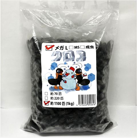 【送料無料・邑楽ファーム】【クール便発送】冷凍クロコオロギ メガLサイズ 1kg(約1100匹入り)