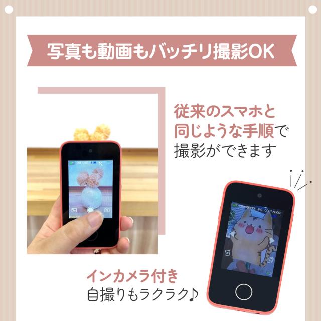 従来のスマホと同じような手順で撮影ができます。インカメラ付なので自撮りもラクラク♪