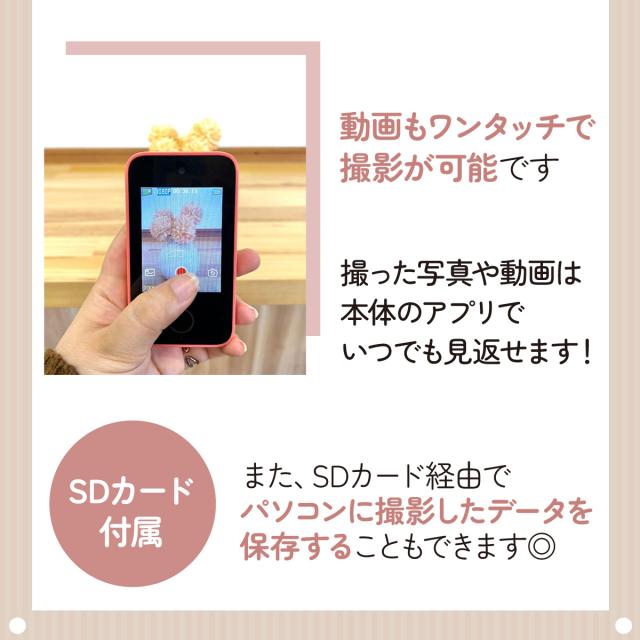 動画もワンタッチで撮影できます。撮った写真や動画は本体アプリでいつでも見返せます!