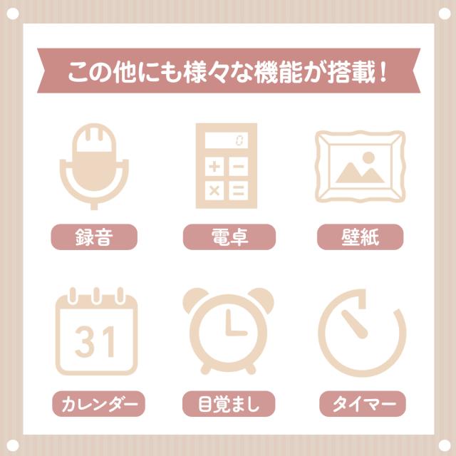 電卓、カレンダー、目覚まし、タイマーなどの機能があります