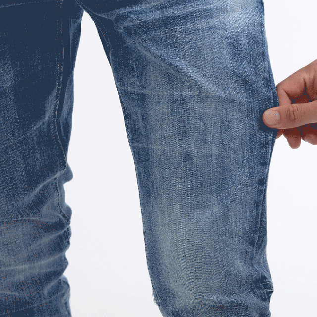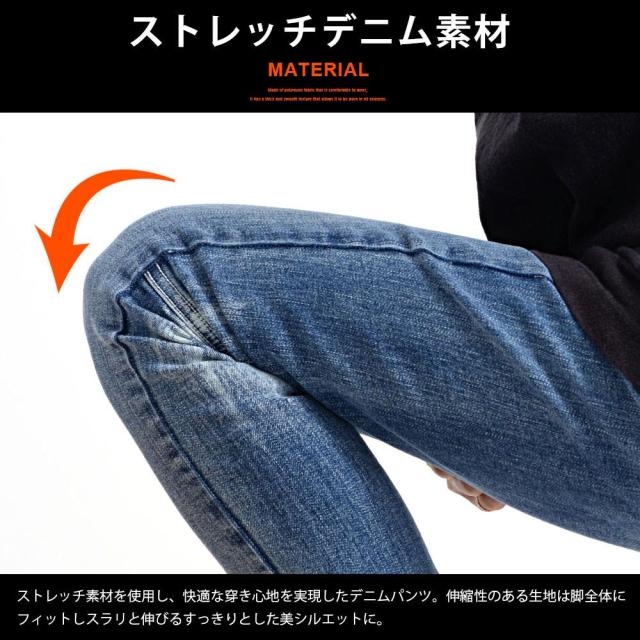 ストレッチ素材を使用し、快適な穿き心地を実現したデニムパンツ。