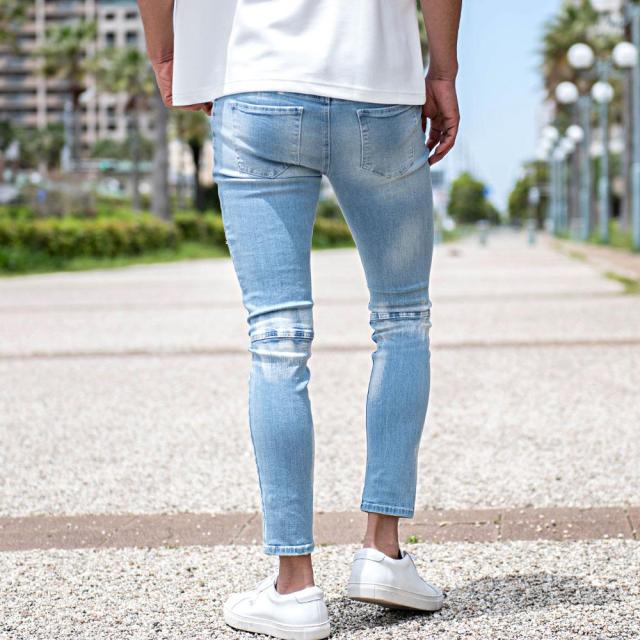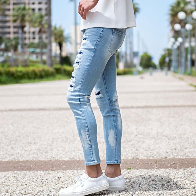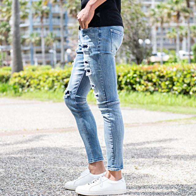 デニムパンツ メンズ ブランド おしゃれ 大きいサイズ ボトムス ジーンズ ジーパン Gパン スキニーパンツ スキニーデニム ダメージ加工 クラッシュ リペア 無地 シンプル 細身 スリム タイト ストレッチ 伸縮性 ユニセックス レディース 男女兼用 ブルー ブリーチ 青 S M L LL XL CavariA キャバリア 大人 アメカジ スポーツ カジュアル ストリート ストリート系 ヴィンテージ ビンテージ クラッシュ リペア 加工 下北沢 下北系 古着 古着系 90s 90年代 2000年代 Y2K 服 春 夏 春服 夏服 男性 男 父の日 父の日ギフト 父の日プレゼント 20代 30代 40代 ファッション メンズファッション 東京 プレゼント 誕生日 記念日 贈り物 ギフト配送について