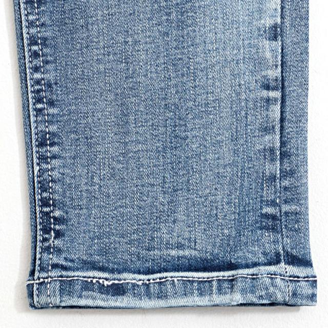 綿とポリウレタンのデニム生地は柔らかい素材感ながら程よくハリがあるので綺麗なシルエットで穿くことができます。