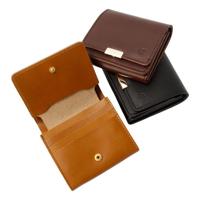 | 触り心地抜群のふっくらシルエット&滑らかな質感が特徴。控えめに輝きを放つスムースレザーで仕立てた、大人上品な二つ折り財布です。 小さめバッグはもちろん、ポケットにも収まるサイズ。そんな携帯性の良い本体に備えた、ギミックの効いた機能に注目です。外側のフラップを開くと、中にはもうひとつのフラップがお出迎え。それぞれのスペースにカードポケットや小銭入れをそつなく配置し、使用頻度や用途によって使い分けられる便利な仕様にしました。 |