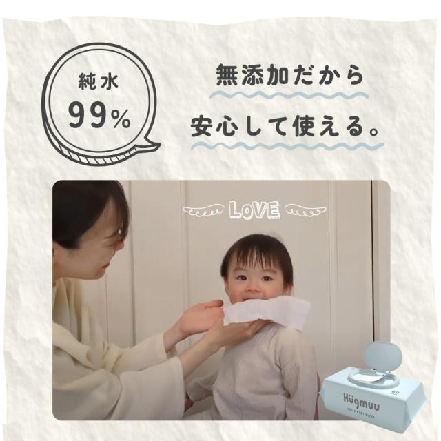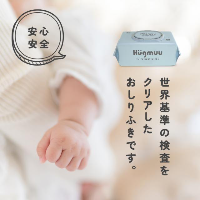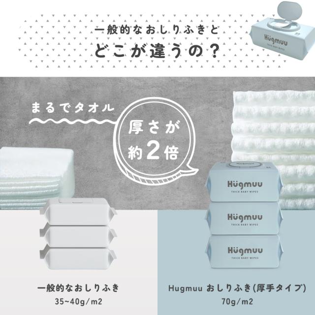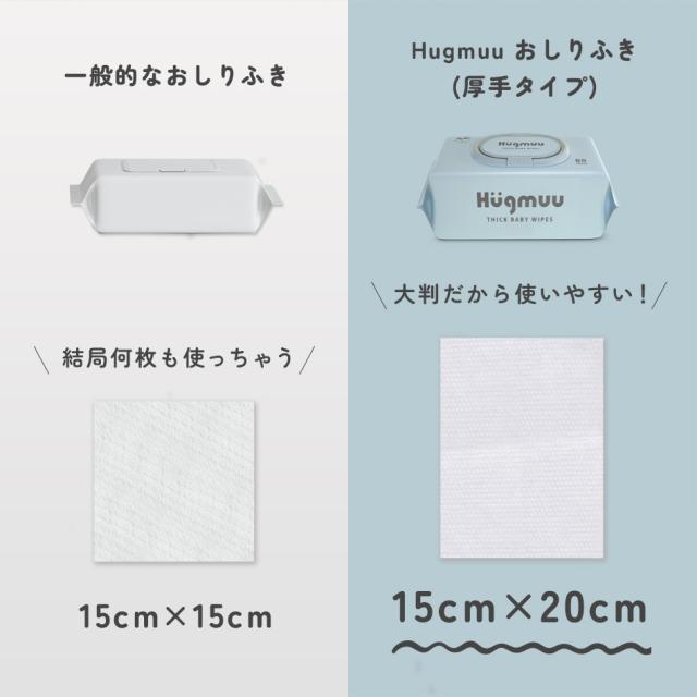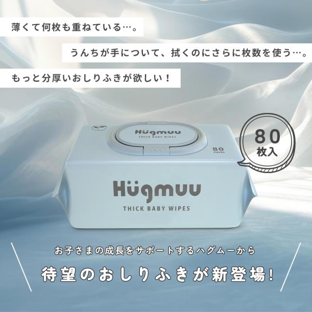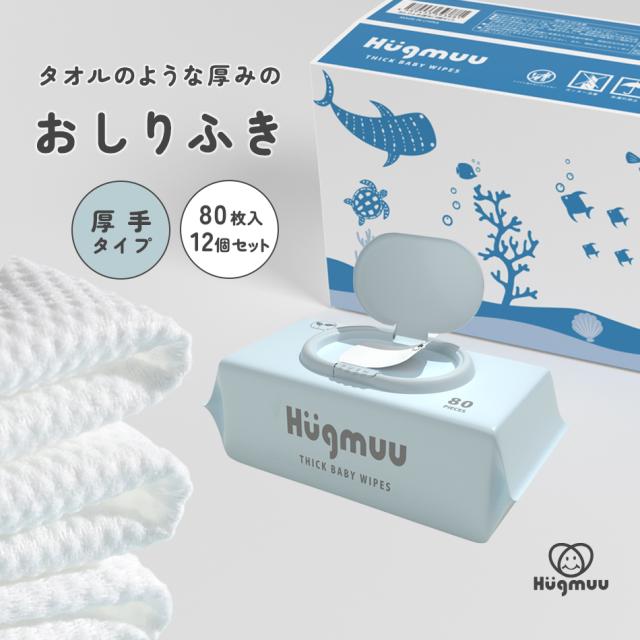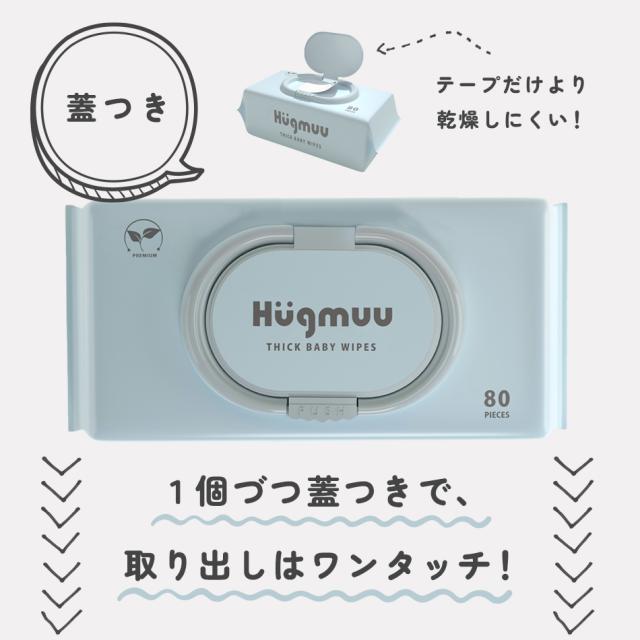 おしりふき 厚手 タオルのような厚み 大判 蓋付き 80枚入り ウェットティッシュ おてふき 体拭き おしり拭き お尻拭き お尻ふき 水分たっぷり 肌にやさしい 無添加 シート 赤ちゃん ベビー Hugmuu ハグムー