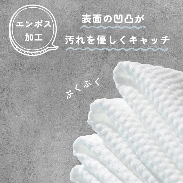 表面の凹凸が汚れを優しくキャッチします。