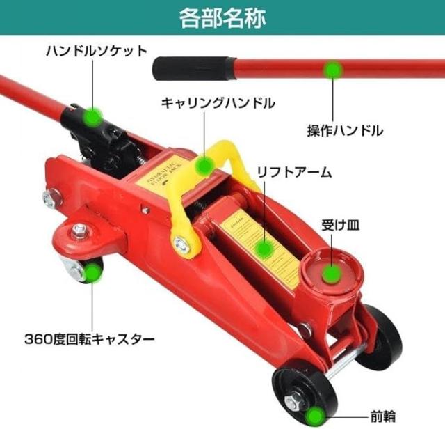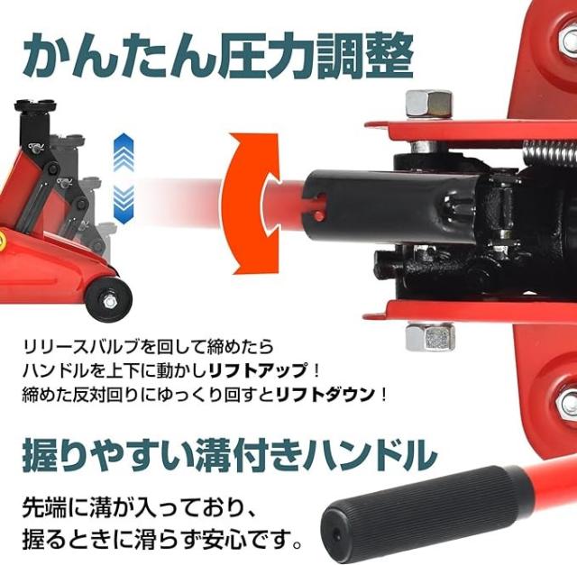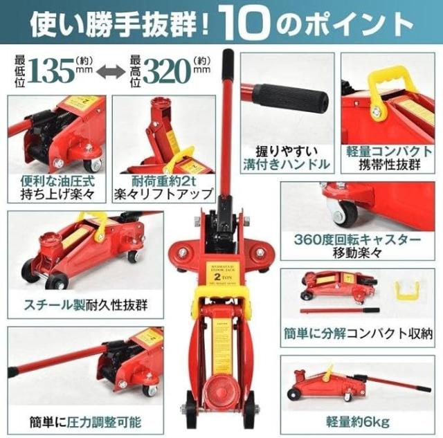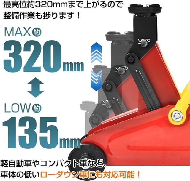 ジャッキ ガレージジャッキ 2t 最高位約320mm 最低位約135mm 油圧ジャッキ フロアジャッキ 車 ローダウンジャッキ ジャッキアップ 工具
