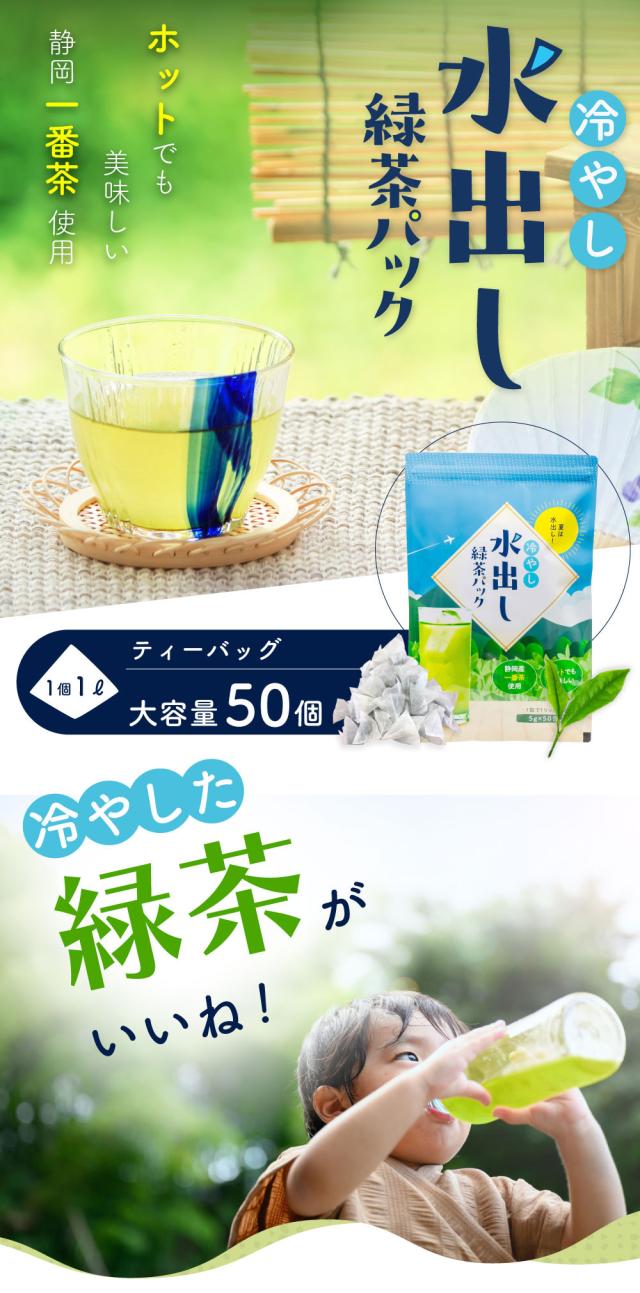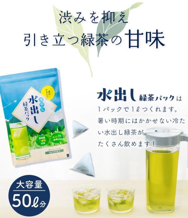 お茶 冷やし水出し緑茶パック 50個入 ポット用 水出し緑茶 水出しボトル 緑茶 茶葉 深蒸し茶 一番茶 日本茶 お茶パック 冷やし緑茶 静岡深むし ティーバック メール便 水だし 冷茶 送料無料 お徳用 お得用 ギフト お茶葉 国産 静岡茶 agesugi_sgu