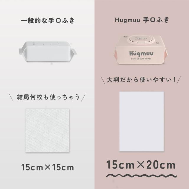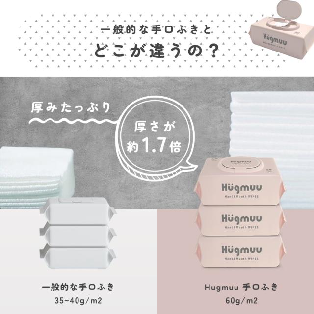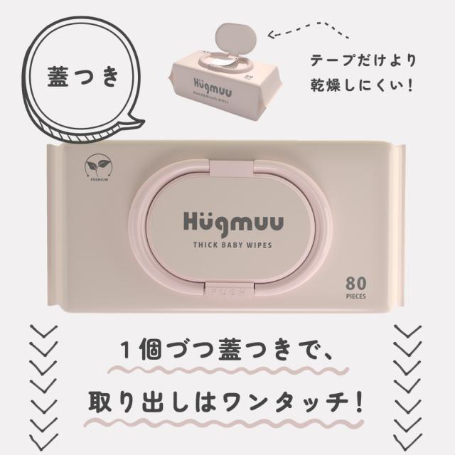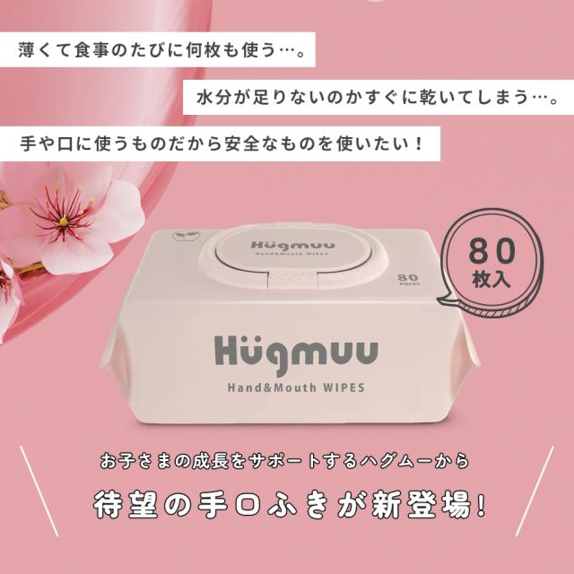 手口ふき 厚手 無添加 肌にやさしい 大判 蓋付き 80枚入り ウェットティッシュ おしゃれ 手口拭き 手くちふき 手拭き 口ふき 体拭き シート 出産祝い 赤ちゃん ベビー Hugmuu ハグムー