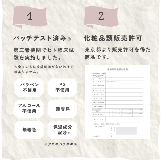 ・使用中や使用後に赤み、はれ、かゆみ、刺激、色抜け(白斑等)や黒ずみ等、異常があらわれた場合は、使用を中止し、皮膚科専門医等にご相談されることをおすすめします。