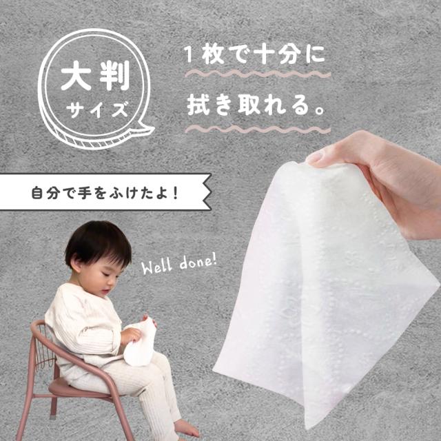 【厚手で大判! 1枚ですっきり拭ける手口ふき】