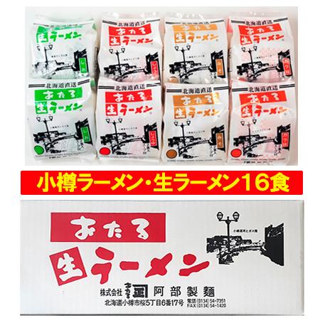 こだわりの麺とスープが地元小樽で人気の阿部製麺の「おたる生ラーメン」シリーズ、4つの味が楽しめるおたる生ラーメン16食セットです。 しょうゆ・味噌(各4食)、ガラしょうゆ・塩(各4食) コーンやネギ、もやしなど、お好きな具材とトッピングしてお楽しみください。ギフト等にもお勧めです。