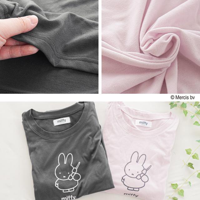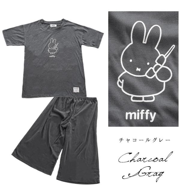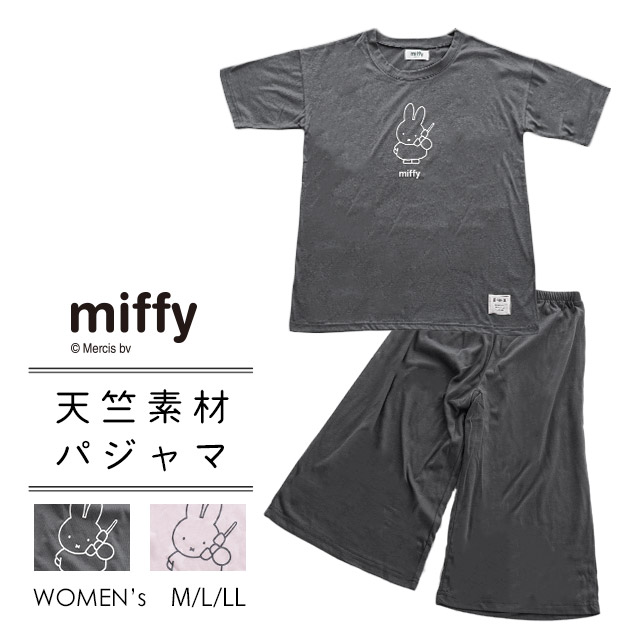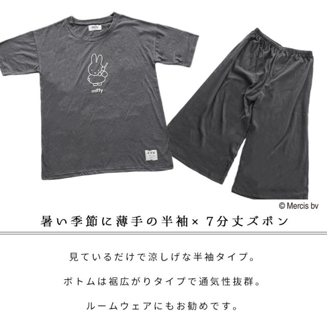 ミッフィー パジャマ ルームウェア 上下セット 綿混 天竺 半袖 丸首 7分丈パンツ 女性 レディース 2025y5