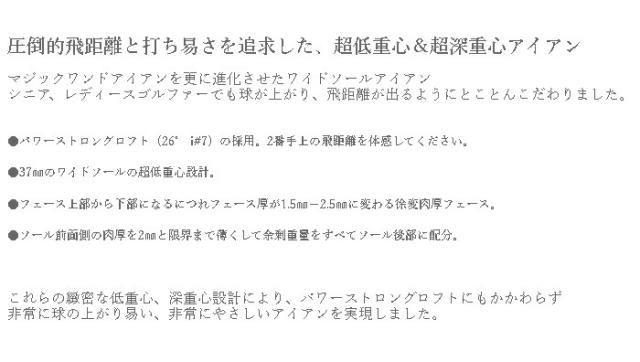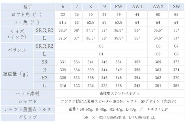 ■ロフト角(度):23(6I)、26(7I)、30(8I)、34(9I)、39(PW)、44(AW1)、50(AW2)、56(SW)