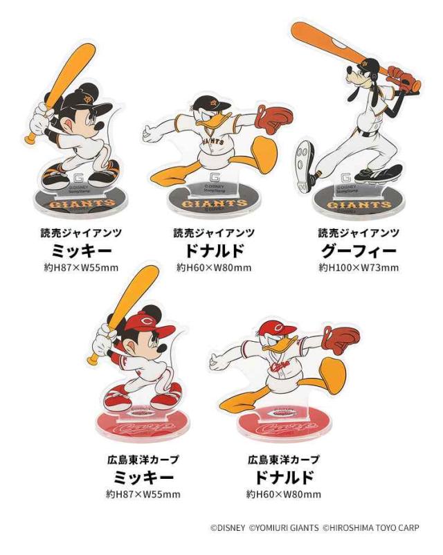アクリルスタンド 公式 Disney&Baseball ディズニー 日本プロ野球 アクスタ コラボ グッズ ミッキー ドナルド グーフィー キャラクター 巨人 読売ジャイアンツ 広島東洋カープ 球団 応援 かわいい 透明 アクリル フィギュア マスコット ミッキーフレンズ プレゼント ギフト