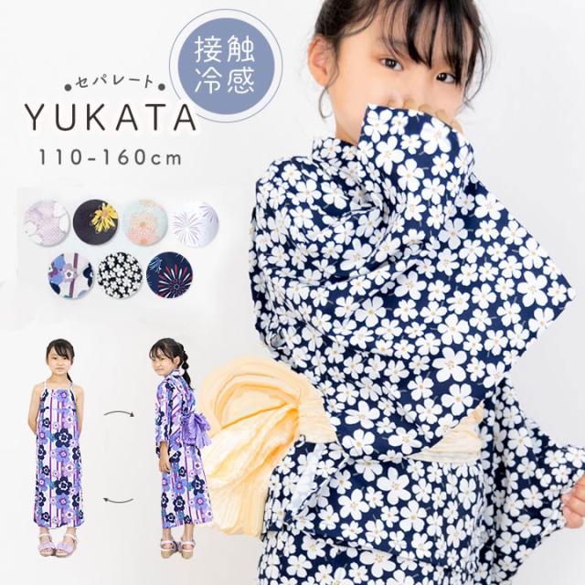 浴衣 子供 女の子 おしゃれ 140 150 160 110 120 130 接触冷感 子供 キッズ ジュニア こども サンドレス 2way 3点セット 小学生 夏 お祭り 盆踊り 和装 和服 部屋着 小学校 女子 女児 可愛い 黒 白 花柄 送料無料