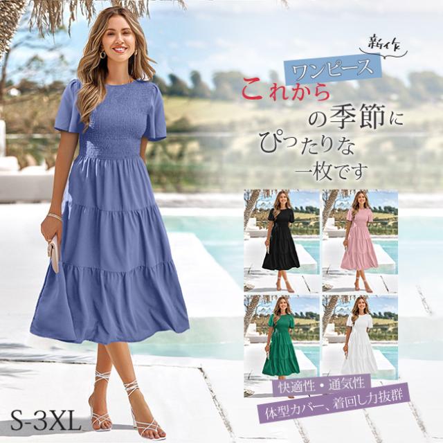 ワンピース レディース ロングワンピース 夏 半袖 ワンピース ロング丈 ゆったり マキシワンピース 大きいサイズ ナチュラル
