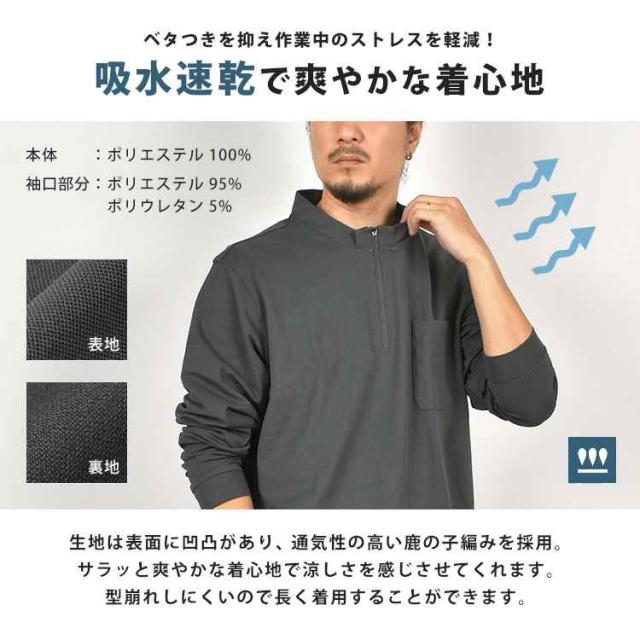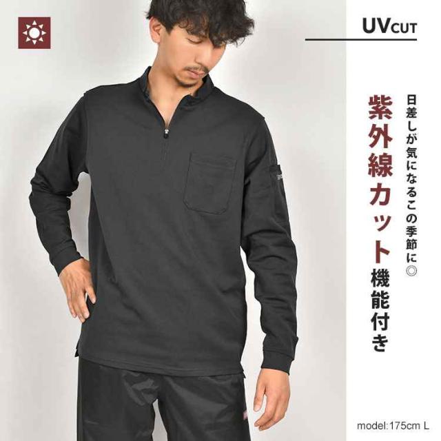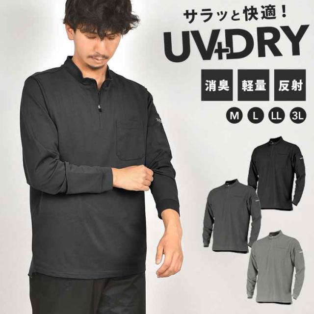 作業着 長袖シャツ 夏用 メンズ 春夏 薄手 uvカット 吸水速乾 涼しい 軽量 消臭 ストレッチ ポケット 黒 ブラック グレー 無地 紫外線カット 日焼け対策 ドライ ハイネック Tシャツ 作業服 仕事着 大きいサイズ M L LL 3L 通勤 農作業 スポーツ 男性 父の日 カジメイク 6902