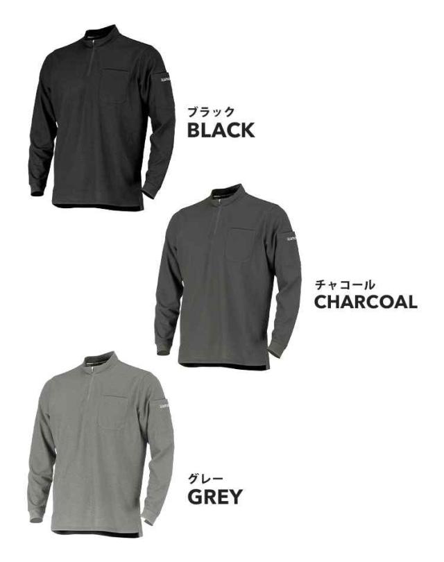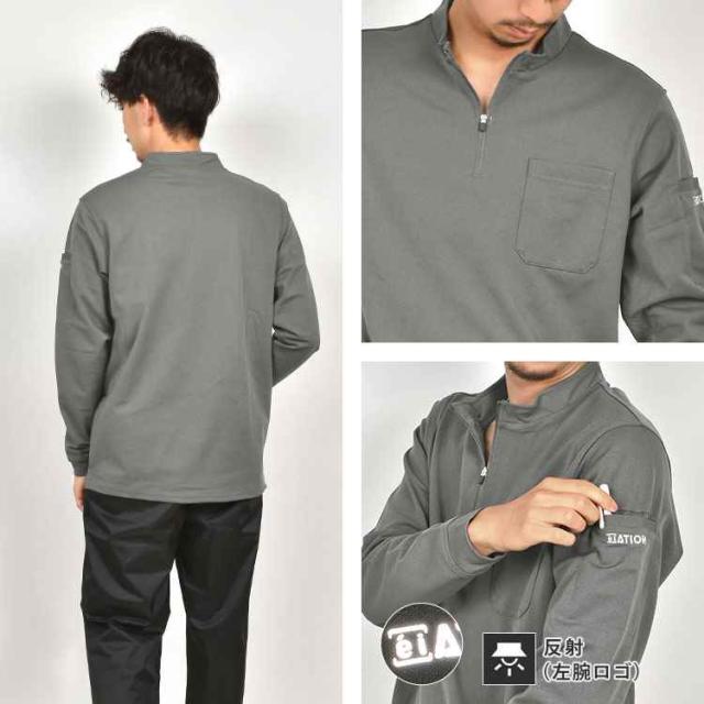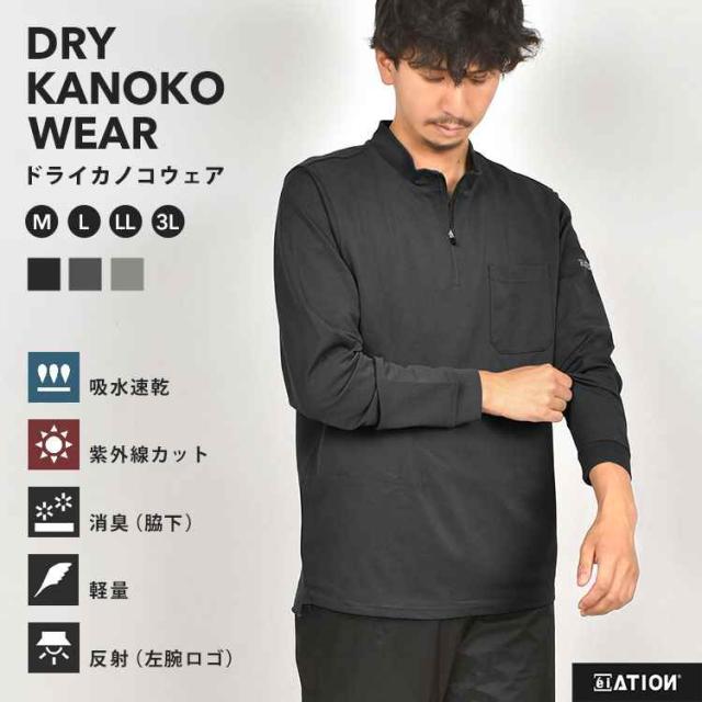 作業用に最適な機能性を備えたドライカノコZIPハイネック長袖シャツ。