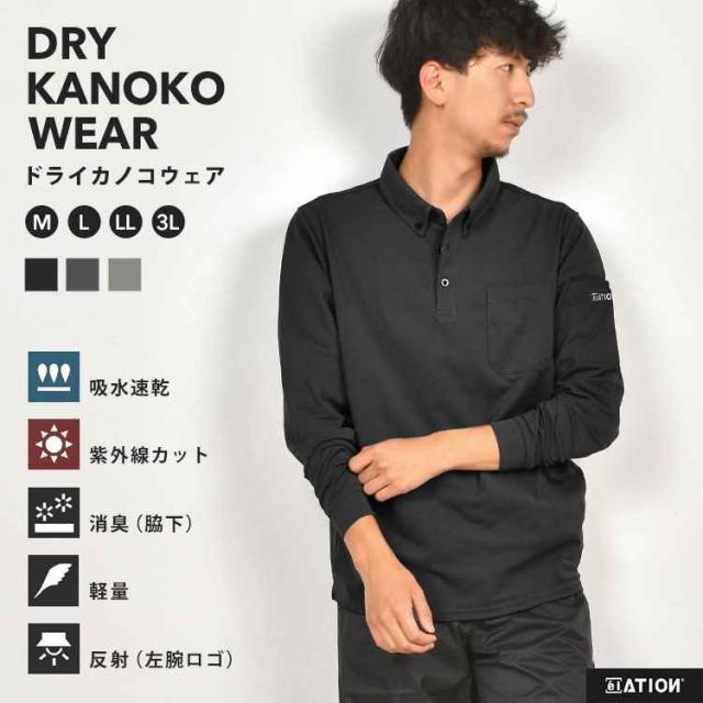 作業用に最適な機能性を備えたドライカノコ長袖ポロシャツ。