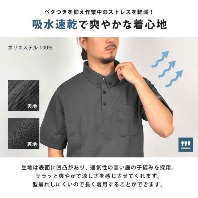 作業着 ポロシャツ 半袖 メンズ 春夏 薄手 涼しい 吸水速乾 uvカット 軽量 消臭 ストレッチ ポケット ポリエステル 黒 ブラック グレー シンプル ドライ 紫外線カット 通勤 工場 現場 農作業 作業服 仕事着 ビジネス 大きいサイズ M L LL 3L 釣り スポーツ 男性 父の日 6905