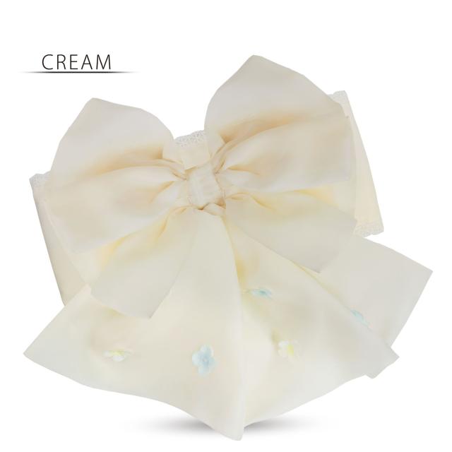 リボン&フラワーモチーフがかわいい 浴衣用 作り帯 兵児帯 選べる3色 黄色 クリーム ラベンダー 紫 ピンク