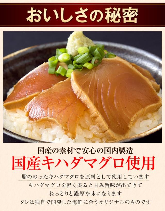 【送料無料】たっぷり5人前 炙りまぐろづけ丼 キハダ鮪をオリジナルの特製タレで仕込みました。脂ののったキハダマグロを原料として使用していますキハダマグロを軽く炙ると甘み旨味が出てきてねっとりと濃厚な味になります タレは独自で開発した海鮮に合うオリシ゛ナルのものです