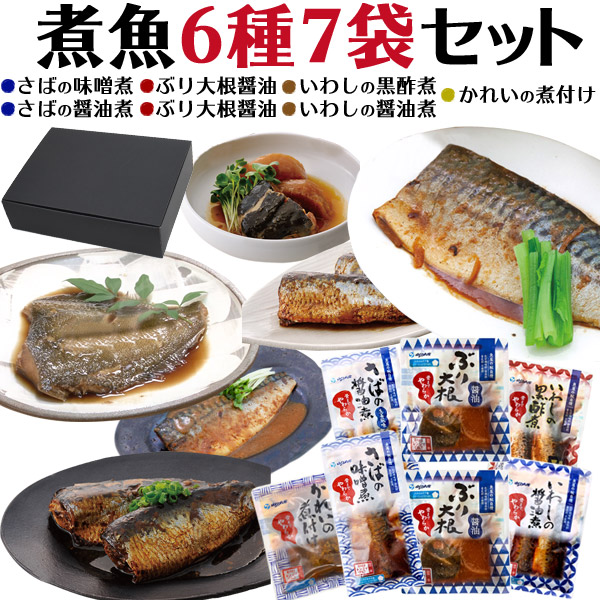 贈答用 煮魚 6種7袋セット 和惣菜 ギフトセット 誕生日 ぶり大根 さばの味噌煮 袋のままレンチン おかず 足りない時の一品 簡単 和食 手軽 1人分 1人前 日替わり 非常食 保存食 防災食 主菜 晩ごはん 夕食 昼食 温めるだけ レトルト 一人暮らし