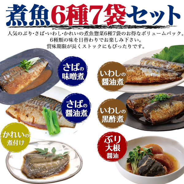 人気のぶり・さば・いわし・かれいの煮魚惣菜6種7袋のお得なボリュームパック。