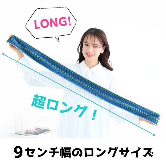 縦幅なんと9cm!とってもスマートなスポーツタオルができました。首に巻いて使えるスリムサイズ。長さもスポーツタオルとして最適な100cm以上の超ロング!軽くて薄手なので、首に掛けても軽い使い心地!折りたたんでバッグやポーチに入れてもかさばらずコンパクトだから持ち運びラクラクです。