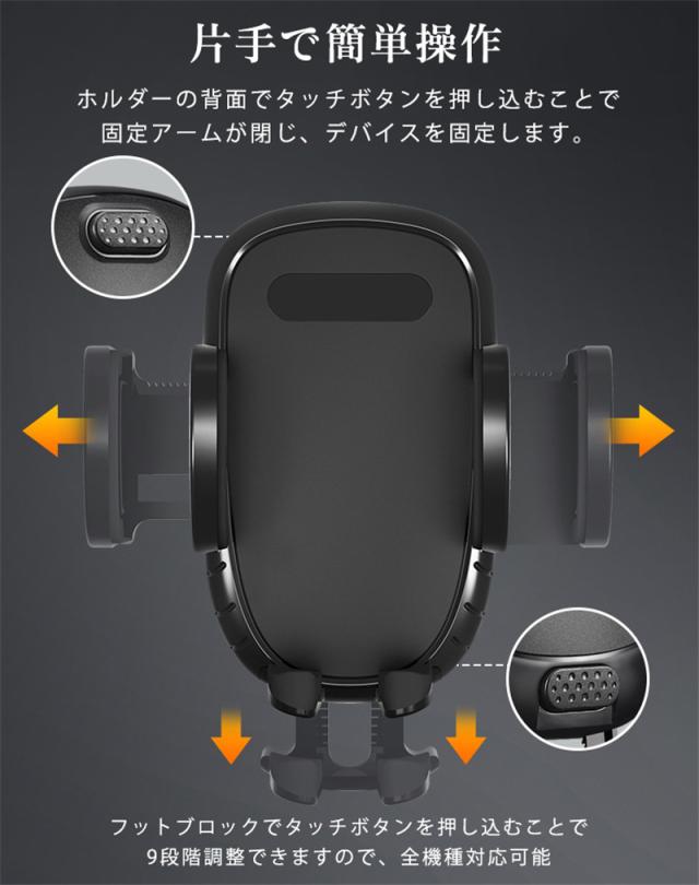 ◆安定感抜群:重量連動、マグネット式と比較し、適切な力でしっかりホールドできるので、手帳型ケースなどをつけたままでも安定感を発揮します。