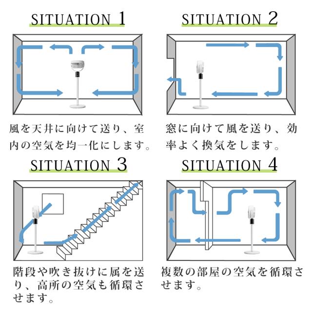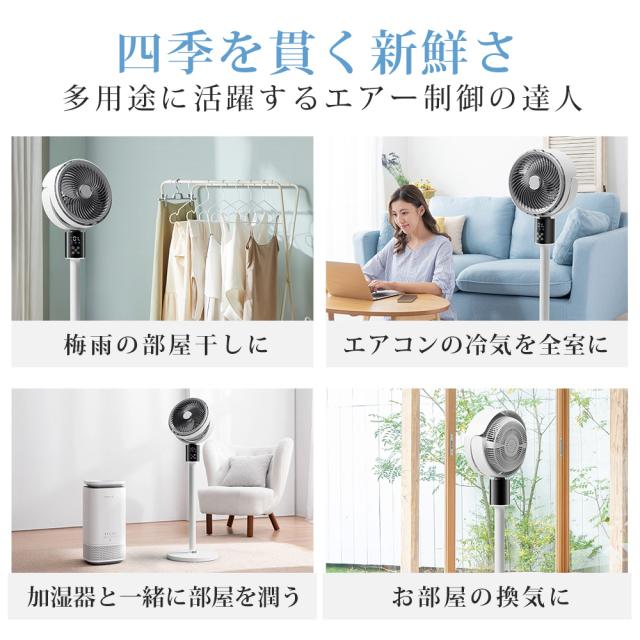■強力なDCモーターを搭載、6段階の風量を調整できます。左右上下90度の自動首振り運転、さらに効率よく空気の循環ができるよう促します。