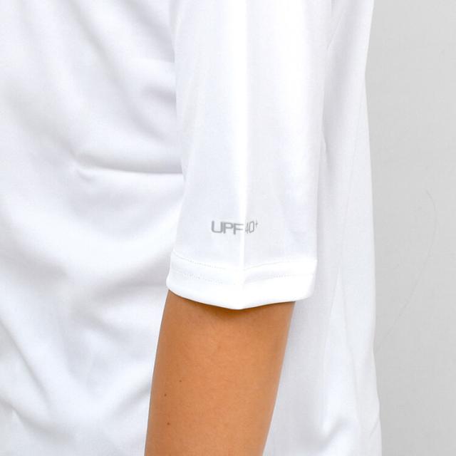 ナイキの半袖ラッシュガード。UPF40+のUVカット機能で紫外線から肌を守り、冷え感を軽減します。首周りの肌に触れる部分はネックテープを縫製し、より快適な着用感を実現。速乾性に優れたDri-FIT素材で長時間の着用もストレスなく着用できます。スポーツウェアとしての使用も◎