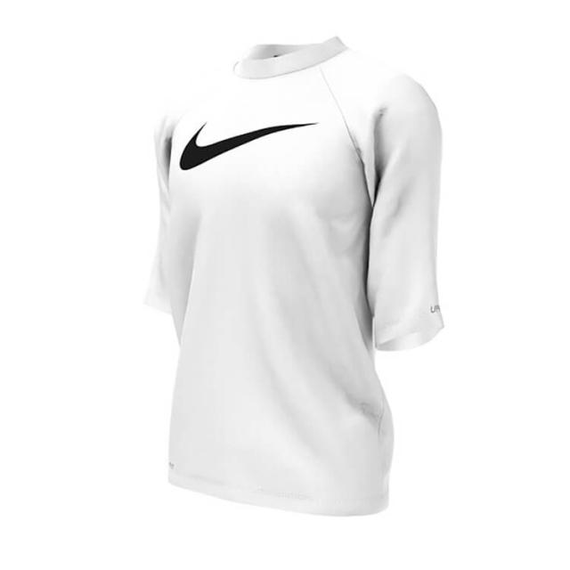 ラッシュガード NIKE ナイキ キッズ 男の子 半袖 子供 フードなし かぶり 130 140 150 160cm NESSD828 N100 白 ホワイト ソリッドショートスリーブハイドロガード Tシャツ 水着 ジュニア ボーイズ UVカット UPF40+ 速乾 日焼け止め 紫外線対策 おしゃれ シンプル ブランド