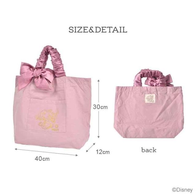 光沢感のあるリボンが可愛いディズニープリンセスのトートバッグ。ラプンツェルとアリエルの上品なイラスト入りで子供から大人まで持てます。ポケットは外と内に一つずつ。ネームタグは名前を書き込む場所が2箇所あり、姉妹で長く使えるのも嬉しいポイント。