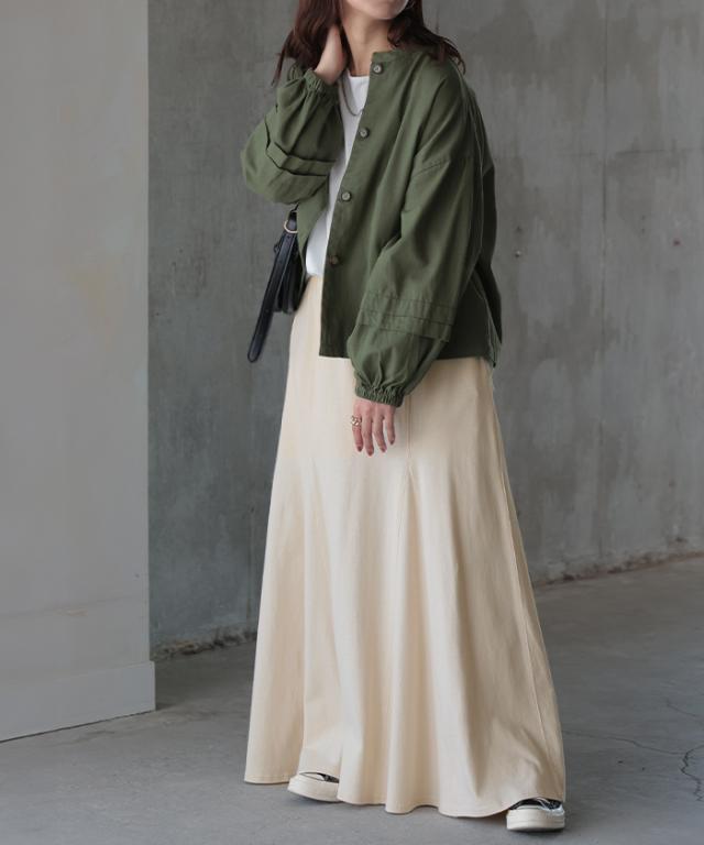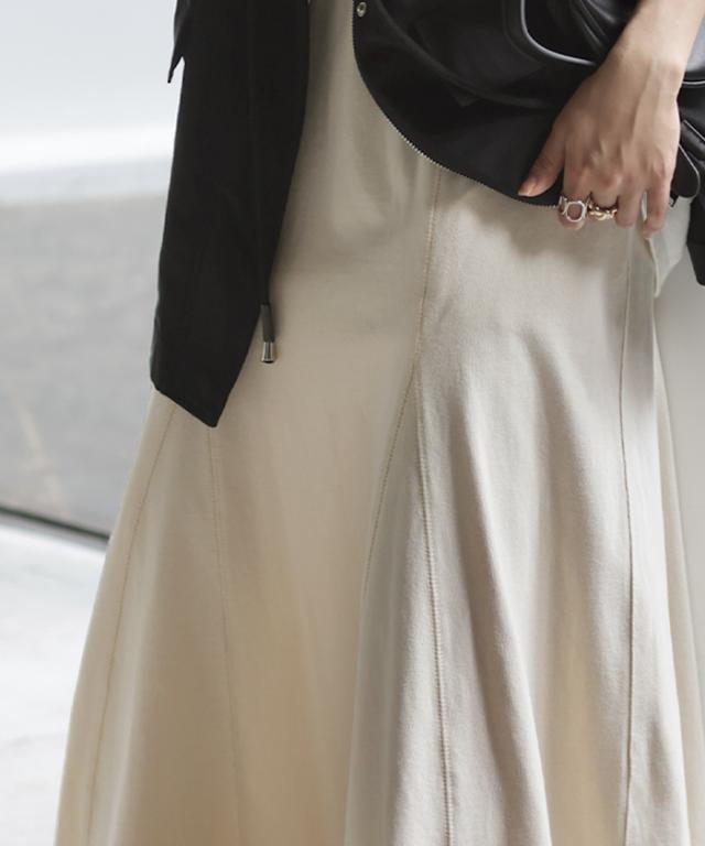 たっぷりとしたフレアパターンが存在感を放ち素材の落ち感が美しい一枚です。