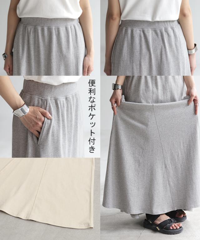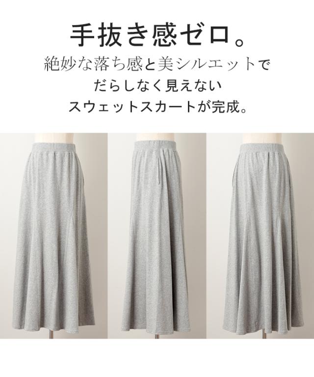 スカート スウェット Aライン 綿100% レディース ロングスカート ボトムス スエット きれいめ フレア フレアスカート ゴム ロング マキシ マキシスカート スウェットスカート 無地 ゆったり おしゃれ ストレッチ アイボリー 黒 白 春 夏 HUG.U 秋新作