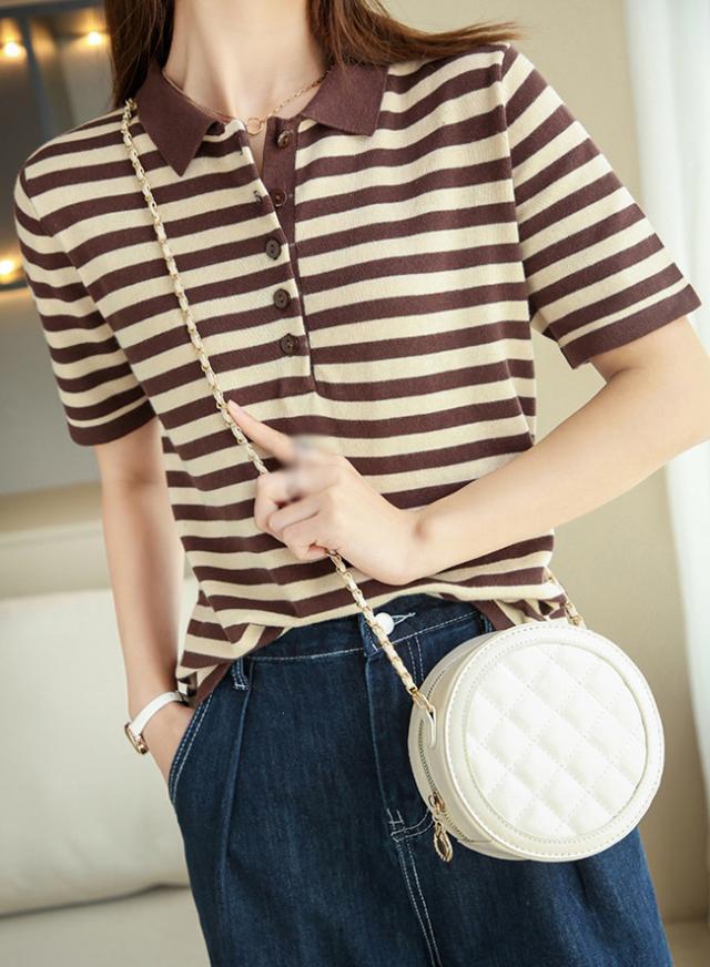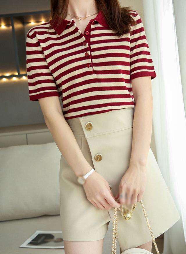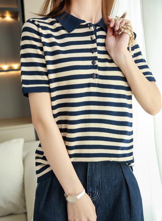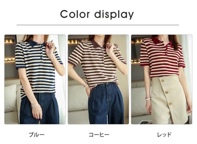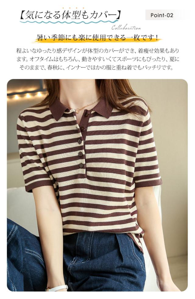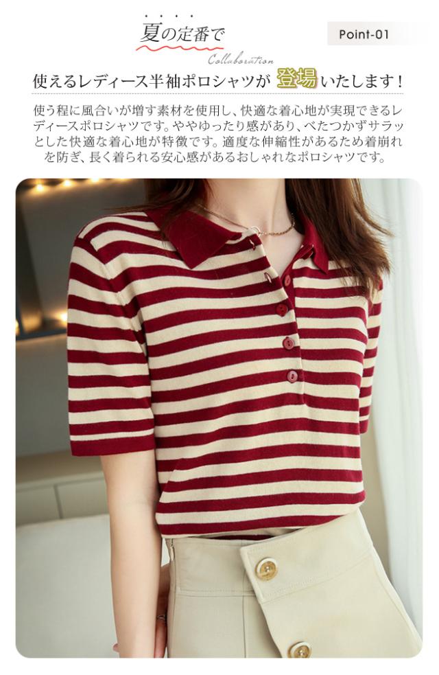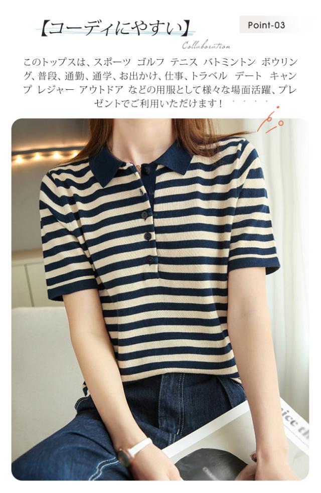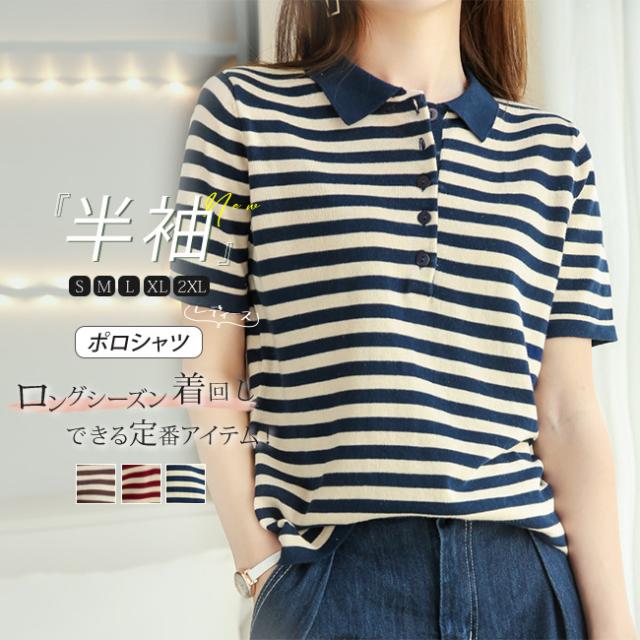 ポロシャツ レディース 夏 半袖 tシャツ ボーダー柄 綿100% カジュアル ゴルフウェア スポーツウェア トップス カットソー ストレッチ 事務服 通勤 おしゃれ
