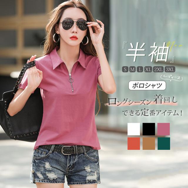 ポロシャツ レディース tシャツ 半袖 襟付き 無地 ゴルフウェア 半袖 ゆったり カットソー カジュアル きれいめ poloシャツ 大きいサイズ 夏 スポーツウェア テニス