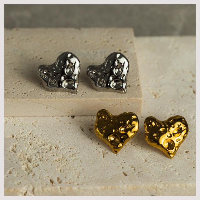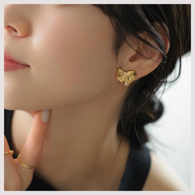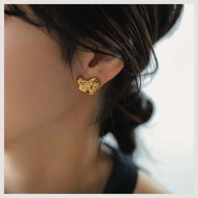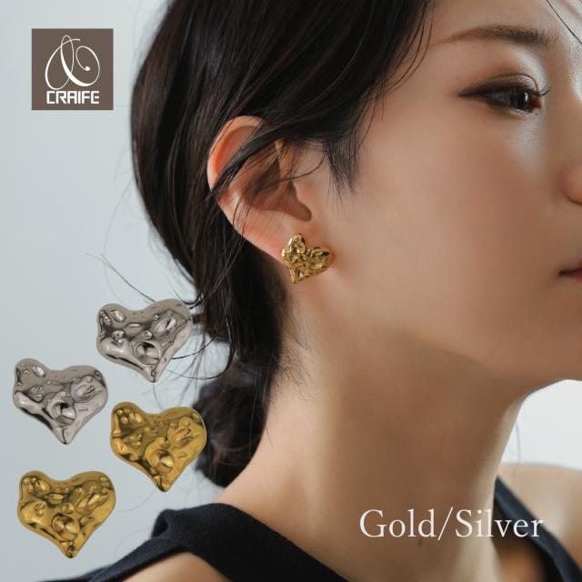 ピアス 大ぶり ハート エンボス ピアス 金属アレルギー対応 18Kコーティング レディース 大人 モダン シンプル かわいい エレガント ジュエリー ゴールド シルバー 送料無料 プチプライス高見え CRAIFE
