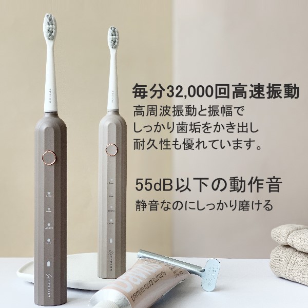 【家電批評 殿堂入り】 EPEIOS Okare!音波電動歯ブラシ ココア ET003CKUN1 送料無料 電動歯ブラシ 電動 歯ブラシ オーラルケア Type-C 充電 2本替えブラシ 4つのモード 毎分32,000回 高速振動 丸洗い可能 IPX7 防水