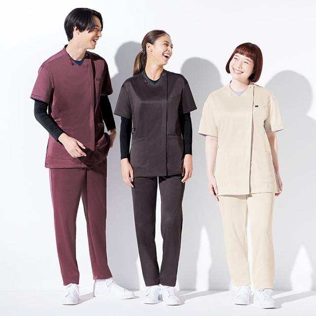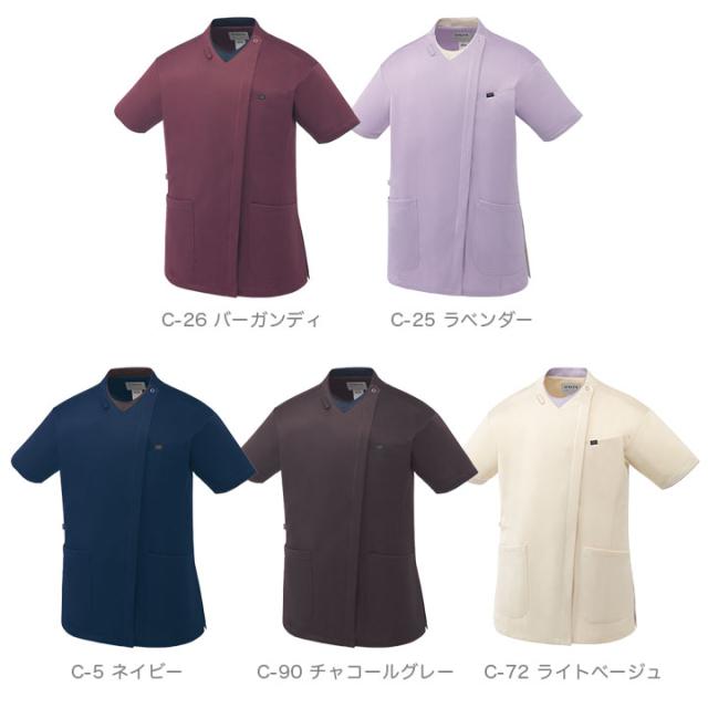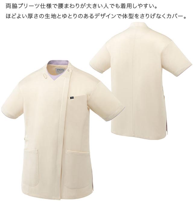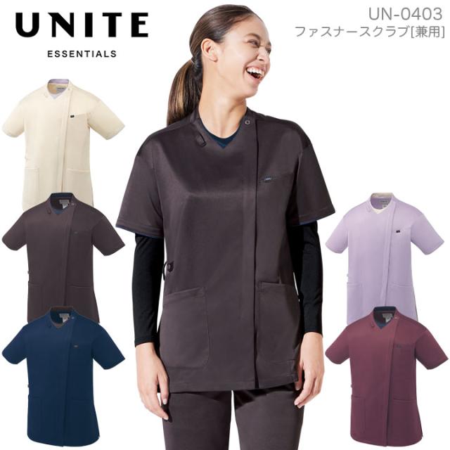 ファスナースクラブ 兼用 UNITE UN-0403 半袖 医療 白衣 看護師 医師 ドクター クリニック 病院 メンズ レディース 制電 ストレッチ 制菌 吸汗速乾 高通気 ユナイト ネイビー グレー ベージュ ラベンダー バーガンディ【送料無料】