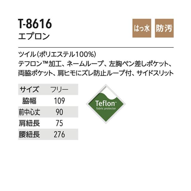 胸付きエプロン arbe アルベ T-8616 【男女兼用】カフェ 飲食店 サービス業 制服 レストラン ユニフォーム レディース メンズ 制電 [胸付きエプロン][エプロン 胸付き] チトセ【送料無料】